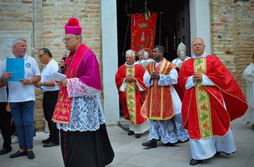 Ma, dicevamo, domenica scorsa la comunità isolana festeggiava anche i Patroni, per cui al termine della Messa i busti dei due Santi – Ermagora, primo vescovo di Aquileia, e Fortunato, suo diacono – sono stati esposti sul sagrato e alla presenza del sindaco Giuseppe Corbatto e di un foltissimo numero di fedeli monsignor Nutarelli ha impartito la tradizionale benedizione alla Città. Si è trattato, infatti, della seconda grande festa estiva dopo il “Perdon de Barbana” rinnovato, nella sua solennità e suggestione, pochi giorni prima. E, ora, altro importante appuntamento sarà a Ferragosto la Festa del Villeggiante, celebrata in occasione della solennità di Santa Maria Assunta.