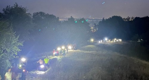 In copertina e all’interno due immagini della camminata notturna con il suggestivo panorama sul Friuli sottostante a Valle di Soffumbergo.