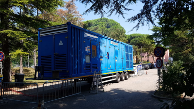 In copertina, un’immagine della penisola di Lignano Sabbiadoro; all’interno, una delle due Power Station (generatori di elevata potenza) impiegate per fronteggiare il disservizio elettrico.
