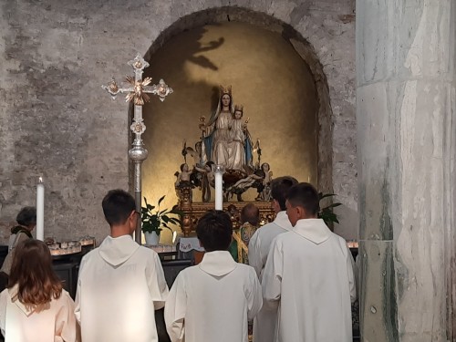 Monsignor Nutarelli rende omaggio alla Madonna degli Angeli in Basilica.