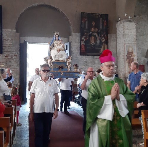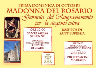 Il parroco poi continua: «Un pensiero particolare va tutti voi Operatori turistici: albergatori, ristoratori, commercianti, addetti alle spiagge, lavoratori stagionali e professionisti dell’accoglienza. Con la vostra dedizione e passione avete reso possibile, anche quest’anno, accogliere migliaia di ospiti, trasmettendo il calore e la bellezza della nostra isola. Il vostro impegno, spesso silenzioso e faticoso, è un dono prezioso per la nostra Comunità e per la vocazione stessa di Grado. Ecco perché il “dire grazie” assume oggi un significato ancora più profondo. Non è un gesto formale né un’abitudine scontata: è riconoscere che ciò che abbiamo vissuto, pur tra fatiche e difficoltà, è un dono. Ringraziare significa aprire gli occhi sulla bellezza che ci circonda, saper riconoscere il valore di chi lavora dietro le quinte, la dedizione dei volontari, la presenza dei turisti e dei pellegrini, la fedeltà di chi, anno dopo anno, continua a credere nella nostra isola. La Festa della Madonna del Rosario diventa allora l’occasione giusta per sostare, per elevare lo sguardo a Maria, donna del grazie e della fiducia, ed imparare da lei a non smettere mai di ringraziare. In un mondo che spesso corre e pretende, fermarsi a dire “grazie” è un atto rivoluzionario: significa scegliere di non dare nulla per scontato, di riconoscere il bene, anche piccolo, che ci sostiene e ci fa camminare. È un modo per custodire le relazioni, rafforzare i legami e ripartire con nuovo slancio verso il futuro». Monsignor Nutarelli ricorda, infine, che «la processione nel pomeriggio con la “benedizione del mare” sarà il cuore di questa giornata: con Maria, sotto il suo sguardo materno, Grado vuole dire grazie per l’estate vissuta, e consegnare al Signore il cammino che ci attende nei mesi che verranno».