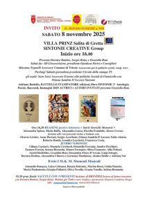 (g.l.) “Il mondo insieme a noi” è il titolo del pomeriggio artistico-culturale in programma oggi a Villa Prinz, Salita di Gretta 38, a Trieste. L’appuntamento con Sintonie Creative Group è fissato alle 16 e l’incontro sarà animato dalle presentazioni di Dorotea Bottino, Sergio Roiaz e Graziella Rota. Sono annunciati poi i saluti del presidente della III Circoscrizione Gianluca Parisi e dell’assessore comunale Massimo Tognolli, in rappresentanza del sindaco Roberto Dipiazza e della Giunta alabardata. Quindi, parleranno il giornalista Pierluigi Sabatti, presidente Circolo della stampa di Trieste, e gli ospiti Sara Sossi, assessore esterno di Fiumicello, Oriana Sandrin D’Ascenzi per Sintonie, Adriano Battello per Battetto Stmpatore Edizioni (libro Sintonie 3a Antologia di Poesie, Racconti e Immagini 2025). Autrici e autori invitati saranno presentati da Graziella Rota.