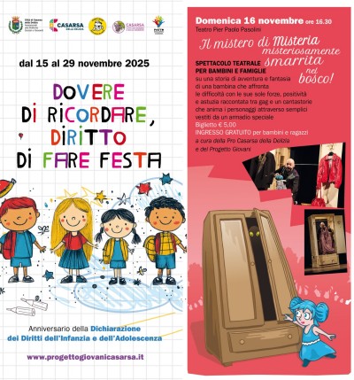 Eventi per celebrare il mese dedicato ai più giovani: anche quest’anno la Città di Casarsa della Delizia rinnova l’appuntamento con la Settimana dei Diritti dei Bambini e degli Adolescenti, che attraverso il progetto “Dovere di ricordare, diritto di fare festa” — giunto alla sua 18ª edizione — coinvolgerà scuole, associazioni, cooperative e istituzioni del territorio impegnate nel mondo dell’infanzia. Il calendario di appuntamenti è promosso dagli Assessorati alle Politiche Sociali e alle Politiche Giovanili con il coordinamento del Progetto Giovani. Dal 16 al 29 novembre, saranno 16 gli eventi pensati per le varie età con l’opportunità di divertirsi, imparare e riflettere sui diritti dell’infanzia. Il calendario offre iniziative sportive, spettacoli, laboratori educativi e momenti formativi dedicati a genitori, insegnanti e ragazzi. Un percorso che ruota attorno ala data del 20 novembre, Giornata mondiale per i diritti dell’infanzia e dell’adolescenza, anniversario della Dichiarazione approvata dall’ONU nel 1989. Nella stessa data è fissato anche l’avvio ufficiale delle attività 2025-2026 del Consiglio Comunale dei Ragazzi e delle Ragazze casarsese, con l’insediamento del nono mandato alle ore 18 nella sede del Progetto Giovani nel giardino di Palazzo Brinis.