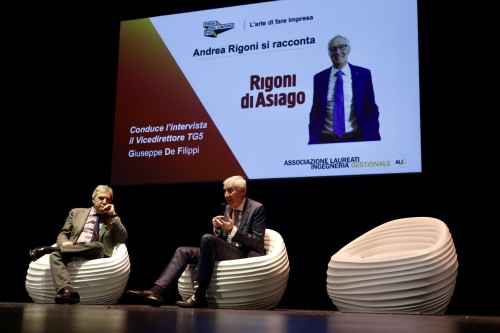 In copertina, Amadeus e all’interno gli interventi di Paolo Mieli e Andrea Rigoni in un Teatro gremito di giovani e imprenditori.