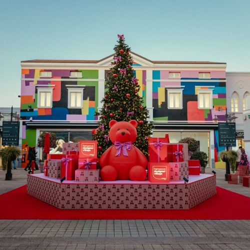 È una festosa invasione di pacchi e pacchetti di ogni dimensione, nastri rosa, luci scintillanti e dolcissimi orsetti rossi: a Palmanova Designer Village il Natale è già arrivato, trasformando ingressi, piazze e vie tra negozi e ristoranti in una vera esplosione di allegria e colore.
