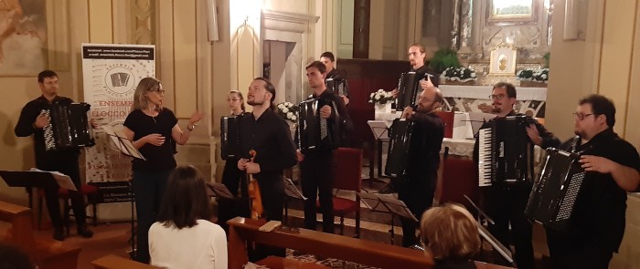 In copertina e all’interno Massimo Pividori e Daniel Longo con il Gruppo Fisarmonicisti Tarcento durante il bellissimo concerto dell’8 settembre scorso nel Santuario della Madonna delle Pianelle a Nimis.