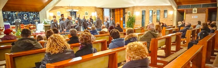 Il concerto ha preceduto la Messa della veglia natalizia celebrata da don Antonio Raddi e animata proprio dalla Corale diretta dal maestro Andrea Boscutti. Un coro interamente maschile che ha eseguito a cappella diversi brani di vari autori contemporanei, tra cui Bepi De Marzi, il fondatore dei famosissimi Crodaioli e autore dell’altrettanto famosa “Signore delle Cime”. Breve e inteso il concerto e altrettanto suggestive le esecuzioni dei canti liturgici che hanno accompagnato la celebrazione eucaristica della Notte di Natale.
