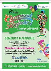 Riecco “Carneval Rojale”, domani un invitante pomeriggio per tutti i bambini. E poi spazio all’arte con Adriana Bassi