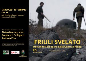 Una terra strategica nel quadro della difesa Nato durante la Guerra fredda, dove ancora adesso numerose opere fortificate raccontano quel periodo cruciale della storia del Novecento: questo il racconto del libro “Friuli svelato – Documenti ed opere della Guerra fredda” che sarà presentato a Casarsa della Delizia mercoledì 25 febbraio, alle 18, nella sala consiliare di Palazzo Burovich de Zmajevich (ingresso libero).