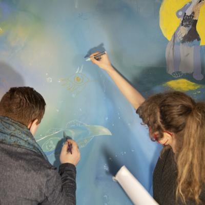 L’artista Michele Tajariol è stato impegnato in una doppia attività laboratoriale: In mille pezzi è il titolo del workshop che ha coinvolto due classi dell’ISIS Pertini di Monfalcone e Cantiere dei Desideri, associazione teatrale di Fiumicello Villa Vicentina, che vede la presenza di persone portatrici di disabilità. Il percorso si è sviluppato nella scrittura collettiva di una narrazione, nella definizione di un personaggio composto da molteplici frammenti, riassemblati in una o più forme possibili. Un richiamo alla necessità di “rimettere assieme i cocci”, quando entriamo in crisi e sembriamo andare “in mille pezzi”.
