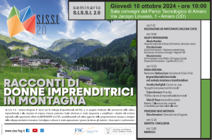 Sissi 2.0 ha organizzato un seminario rivolto ad aumentare l’occupazione e l’imprenditorialità femminile, specificamente in area montana. Stamane, alle 10, nella sala convegni del Parco Tecnologico di Amaro, in via Jacopo Linussio, si terrà infatti il seminario del Progetto finalizzato alla promozione della cultura imprenditoriale e alla creazione di impresa e lavoro autonomo: Imprenderò [in] Fvg – Sissi 2.0. L’incontro dal titolo “Racconti di donne imprenditrici in montagna” – Percorsi di sostegno per la creazione d’impresa in Friuli Venezia Giulia sarà dedicato all’imprenditorialità femminile nel territorio montano regionale.