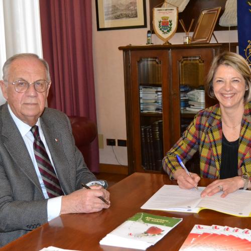 In copertina, il sindaco di Campoformido, Erika Furlani, con il presidente Arpino alla firma della convenzione con la Lilt Udine.