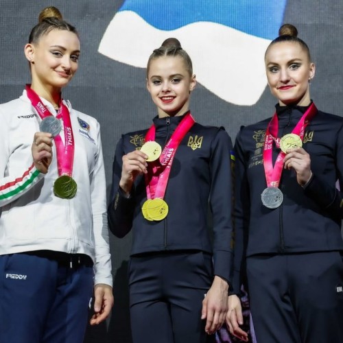 Tara Dragaš, accompagnata in pedana dalla mamma-coach Špela Dragaš ha chiuso la competizione al quinto posto nel concorso generale, un risultato di assoluto rilievo in un contesto estremamente competitivo. Ma è nelle finali di specialità che la giovane ginnasta friulana ha saputo esprimersi al meglio, conquistando il primo posto nella finale con il nastro grazie a un’esecuzione pulita, espressiva e tecnicamente impeccabile, premiata con un punteggio di 28.800. Si tratta del suo primo oro in una tappa di Coppa del Mondo, arrivato in un contesto non solo prestigioso ma anche dall’alto impatto emotivo, trattandosi della tappa italiana. Sempre nelle finali, Tara ha ottenuto anche un importante terzo posto nella prova con la palla, dove ha raccolto un punteggio di 29.400. Un esercizio eseguito con eleganza e intensità, nonostante si tratti dell’attrezzo meno congeniale per la diciottenne friulana.